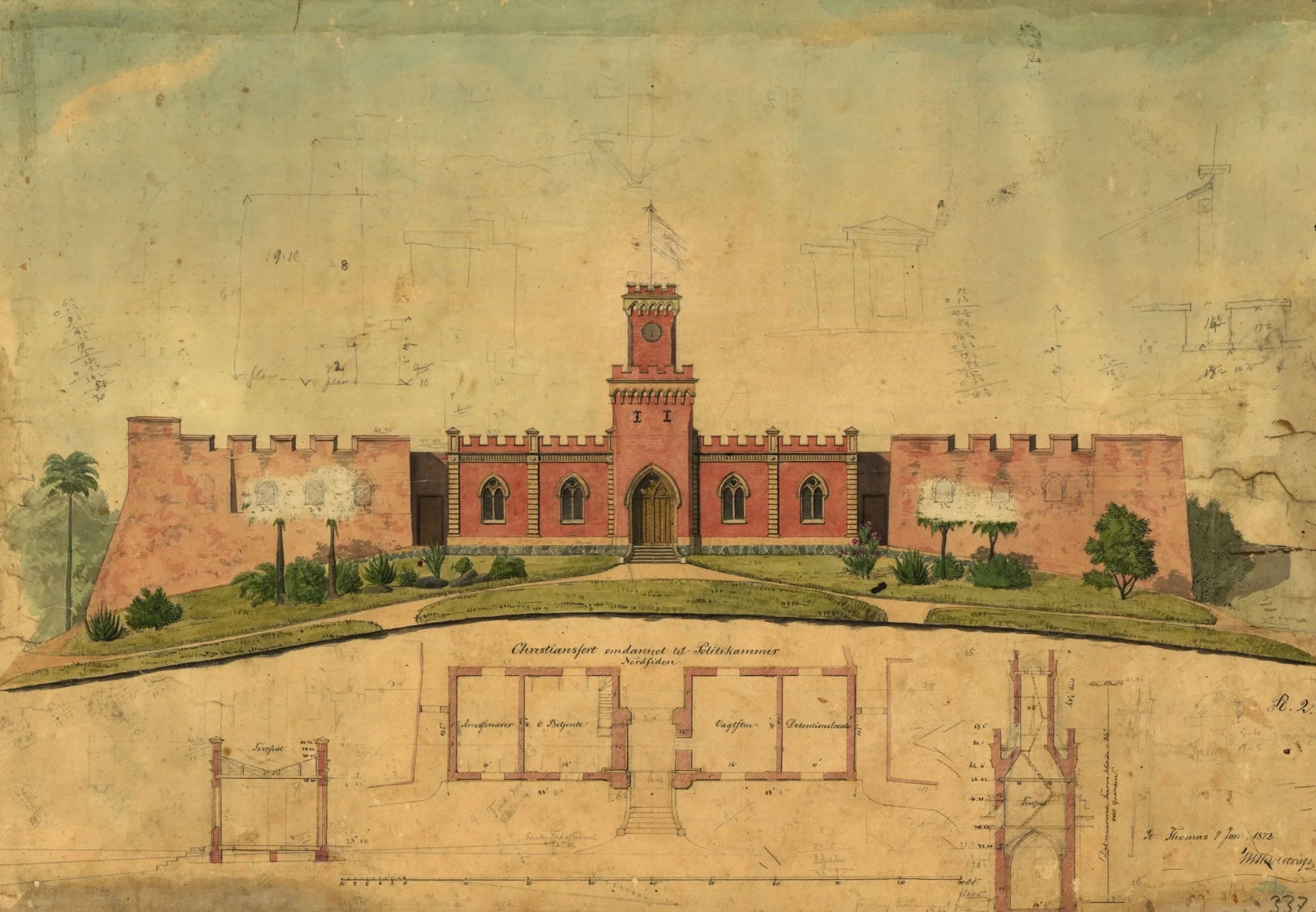 The fort was established under the leadership of Jørgen Iversen Dyppel, who oversaw construction, colonial administration, and labor, which included indentured European workers and enslaved Africans. The central building, Trygborg (“safe castle”), housed the governor, staff, and essential functions, while the star-shaped bastions and surrounding palisades provided defense against pirates and foreign attacks.